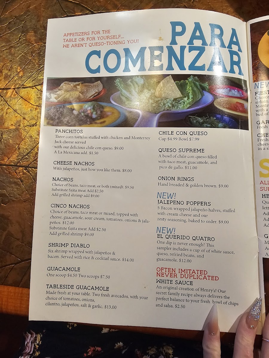 Welcome to The Original Henry's, a vibrant Mexican restaurant nestled in San Angelo, Texas. Located at 3015 Sherwood Way, this beloved eatery is renowned for its hearty Tex-Mex fare and inviting atmosphere. As you browse the menu, you'll find a mouthwatering mix of traditional favorites, including chicken fried steak and enchiladas, alongside enticing options like guiso burritos and freshly prepared guacamole. The portions are generous, ensuring you leave fully satisfied.